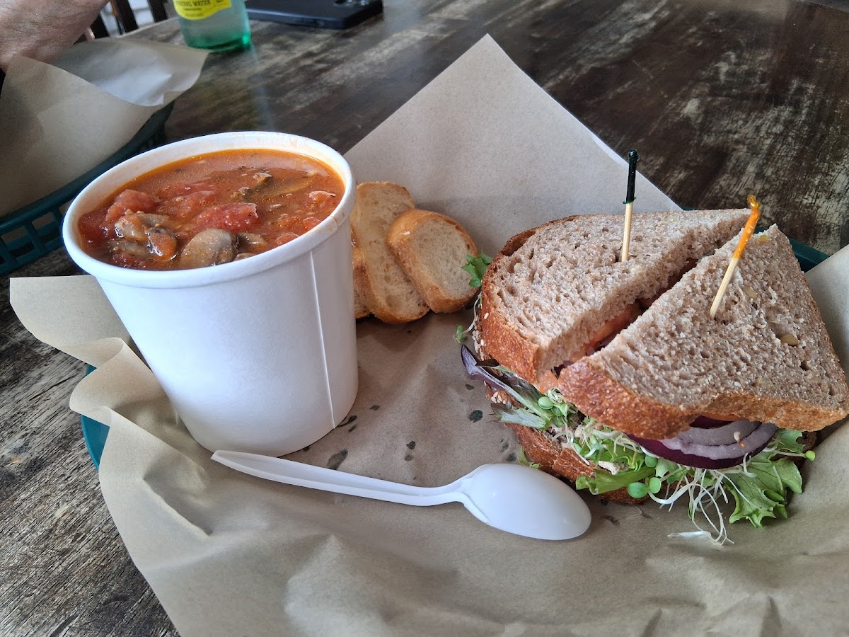The kind of bakery and café every neighborhood should have. I had the green salad— wonderfully fresh ingredients and a house made balsamic vinaigrette. along with a generous made just right tuna salad. I took a slice of coconut cream pie to go -perfection! Just the right amount of sweetness. You can also pre-order bread — they have sourdough which is a challenge to find here. Their prices are very reasonable and I also appreciate the friendly service!⭐