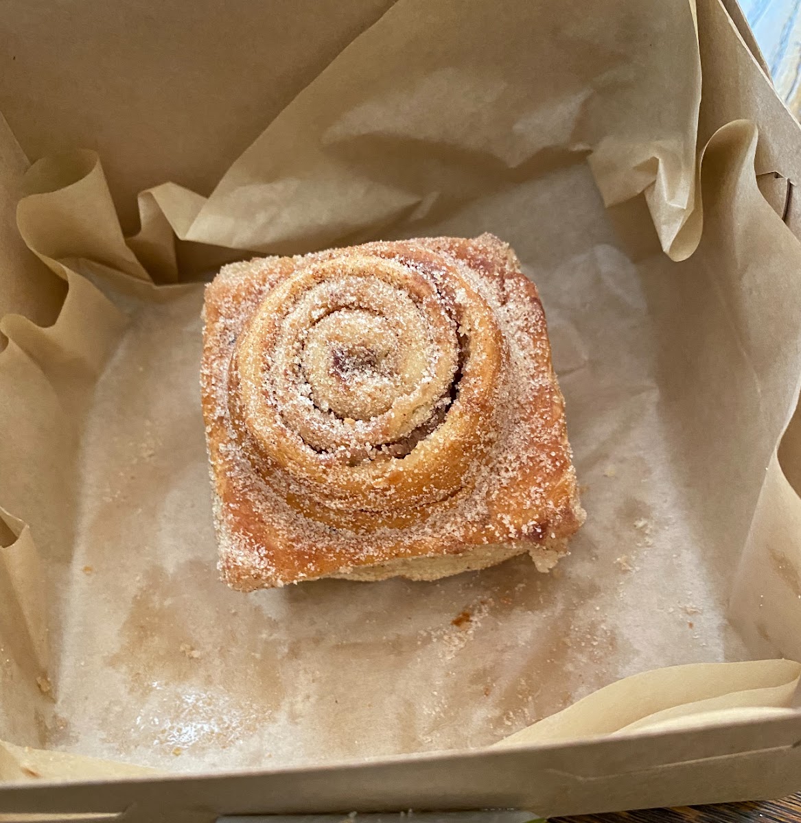 Just know: It’s all downhill from here. My coworker bought me a cinnamon roll and I took a look at it thinking “what is this basic thing before me with no icing? We shall call you ‘Karen’.” I thought it was gonna be one of those fluffy dinner rolls-like cinnamon rolls. BUT NO! I took a bite and was surprised that I bit into a deep fried churro-like, fried croissant-like, deep dish pan pizza-like, cronut-like devilish concoction that was slightly oily with every bite and covered in cinnamon sugar. What the hell?! WHAT THE HELL!?!?!!!! It’s all downhill from here. I have to try everything else, but that is a 5-star cinnamon roll.